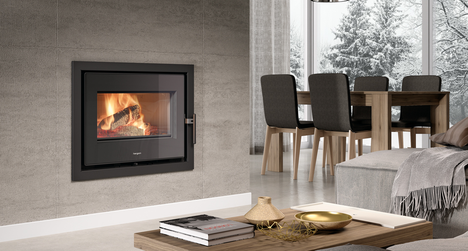 Para conseguirlo ha creado una puerta acristalada de mayores dimensiones de lo habitual, que proporciona una gran visibilidad y disfrute del fuego. Entre sus características está también el sistema de distribución de aire caliente mediante ventiladores internos de tres velocidades, que garantiza una eficiente distribución del calor.