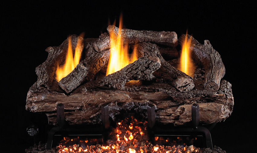 The G10 Series Charred Aged Split Oak (ceramic refractory log set) feature the popular burnt through front log, lively flames and a large ember bed with Bryte Coals highlighting the handcrafted logs, adding efficient heat and unmatched beauty to your fireplace. Control Options: