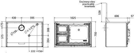DIMENSIONES HORNO (AN X AL X F) (MM.) 450 x 385 x 425